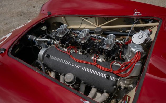 This 375 Plus is accompanied by period photographs and articles, a Marcel Massini report, copies of factory build sheets, and impeccable ownership provenance from new – including 25 years in Harrah’s collection on display and another thirty years in a “curated collection” with the consignor. While the listing notes a matching-numbers engine and other original components, the Massini report indicates the engine was restamped, and the data tag on the firewall is clearly a reproduction. The four-speed gearbox is from a 375MM. The listing specifies that this historically important Ferrari is a “candidate for a full restoration”, which means we don’t know definitively if it runs! Once the Lampredi Tipo 113 V12 wakes up, it will be good for somewhere between 330 and 370 hp, depending on tuning talent and final equipment specs.