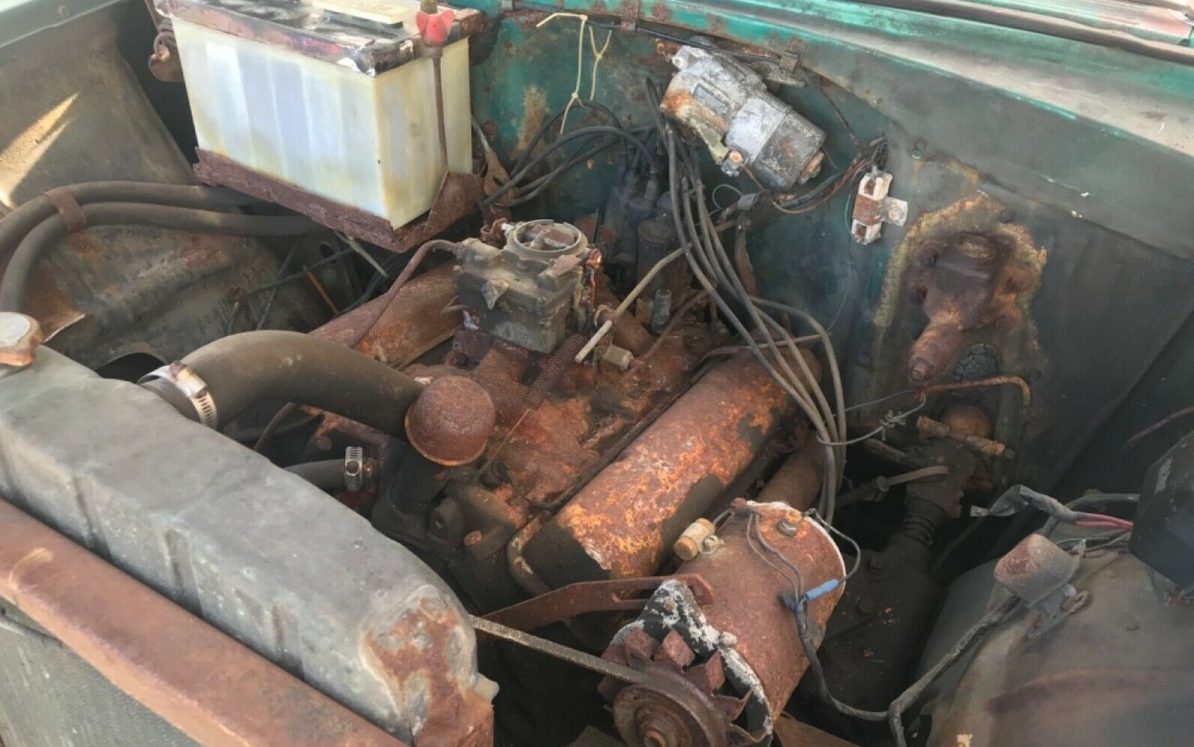 The 1956 model year was the second year for the famed, or soon to be famed, Chevrolet small-block V8 engine, this one of the 265 CI variety. As I may have mentioned somewhere in the past, the small block count stopped at about 100,000,000 units produced by 2011. And it is still in production so there’s no telling what the count is at this point. The seller tells us that he has not attempted to start this 170 HP variant and looking it over, it looks like it went on a deep-sea dive somewhere – with originality comes rust and in this case a lot of it. Small block V8’s are resilient but it wouldn’t surprise me if this one will have to come completely apart to see life again. In typical form, a two-speed Powerglide automatic transmission backs up this V8.