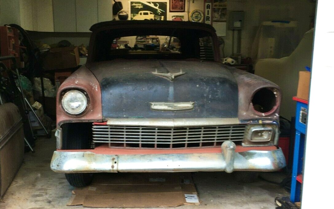 Dang! Less than 4 miles from me, but might as well be on the moon as far as the price goes for me. I have a wagon with a steering column a rad. a bell housing, engine a 3 and a 4 speed, rally’s, clutch pedal, and an engine already drilled and tapped for front mounts I built for my 55 truck that I kept when I sold the truck. (DOH!) Don’t like rag tops. Guess it doesn’t matter any way since I can’t afford it. Dang obama cost me my retirement savings since I had to use it to live since I was 55. Now retired and no 56 or money. Someone will have a lot of fun with this car!!!