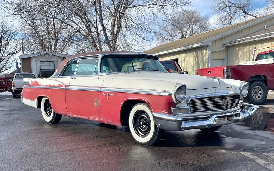 The ’55-56 Exner designs were tastefully done. All the Chry-co cars were handsome during those years. This car needs that powerful hemi. It’s a heavy car, and the hemi was also a torque monster. If I was to buy this car and repaint it, I’d keep the red and white but paint the top black.