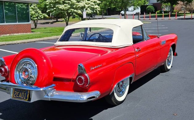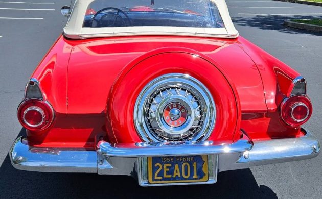For some reason, no photos of the engine bay are included in the ad. This Red ‘Bird is powered by the optional 312-cubic-inch Thunderbird Special V8 that was rated at 260 horsepower. It’s had an electric fuel pump added and the car’s mileage is listed at 14,967 (most likely 114,967). It’s paired with a Ford-O-Matic automatic transmission and Jerry describes this T-Bird as being “in good running condition.” This ’56 T-Bird is located in Lansdale, Pennsylvania, and is listed for sale here on craigslist for a “negotiable” $35,000. Although the classic ’55-’57 Thunderbirds have softened in price, they will probably always be coveted collectibles given their iconic status and timeless styling that, to me, has aged very well for seven decades. The next owner won’t be getting a high-points show car, but they’ll be getting a real-looker in this Fiesta Red ’56 Thunderbird.