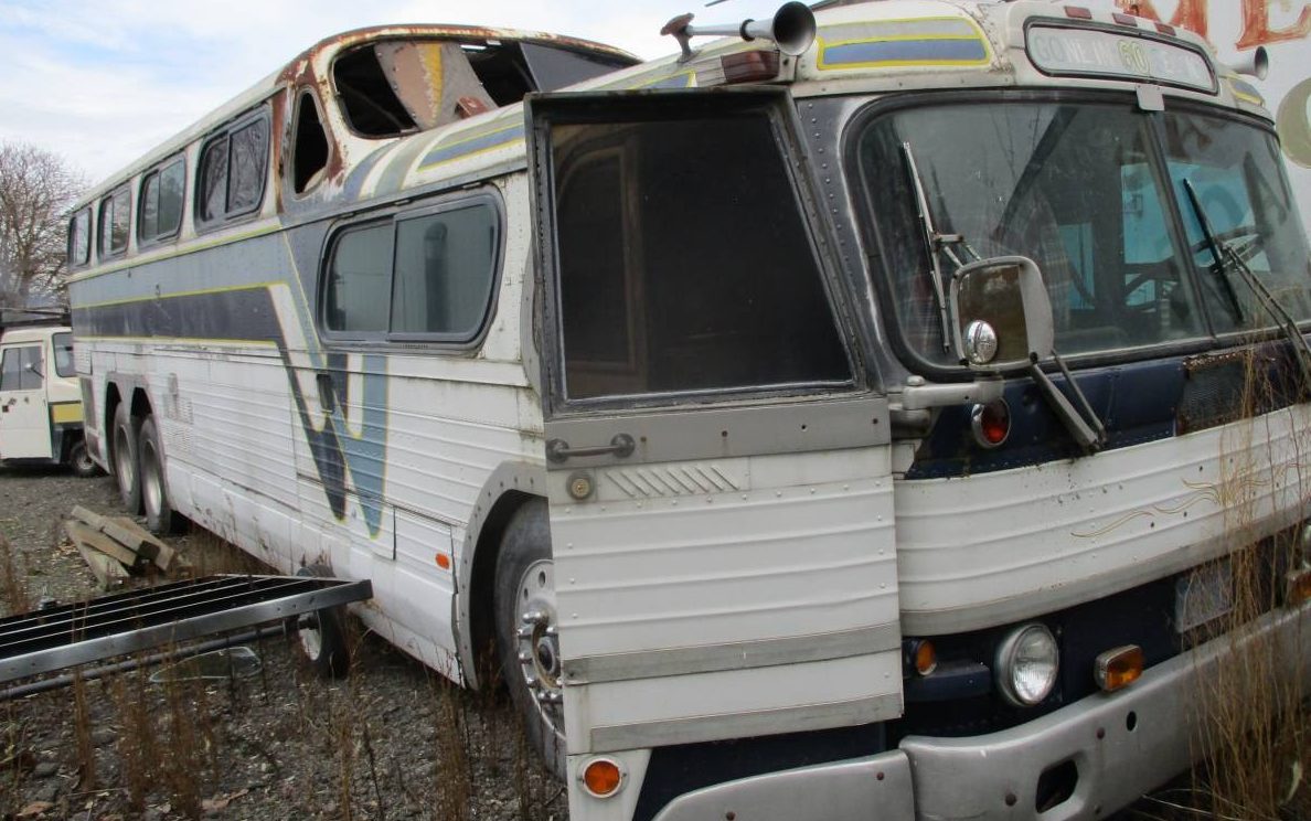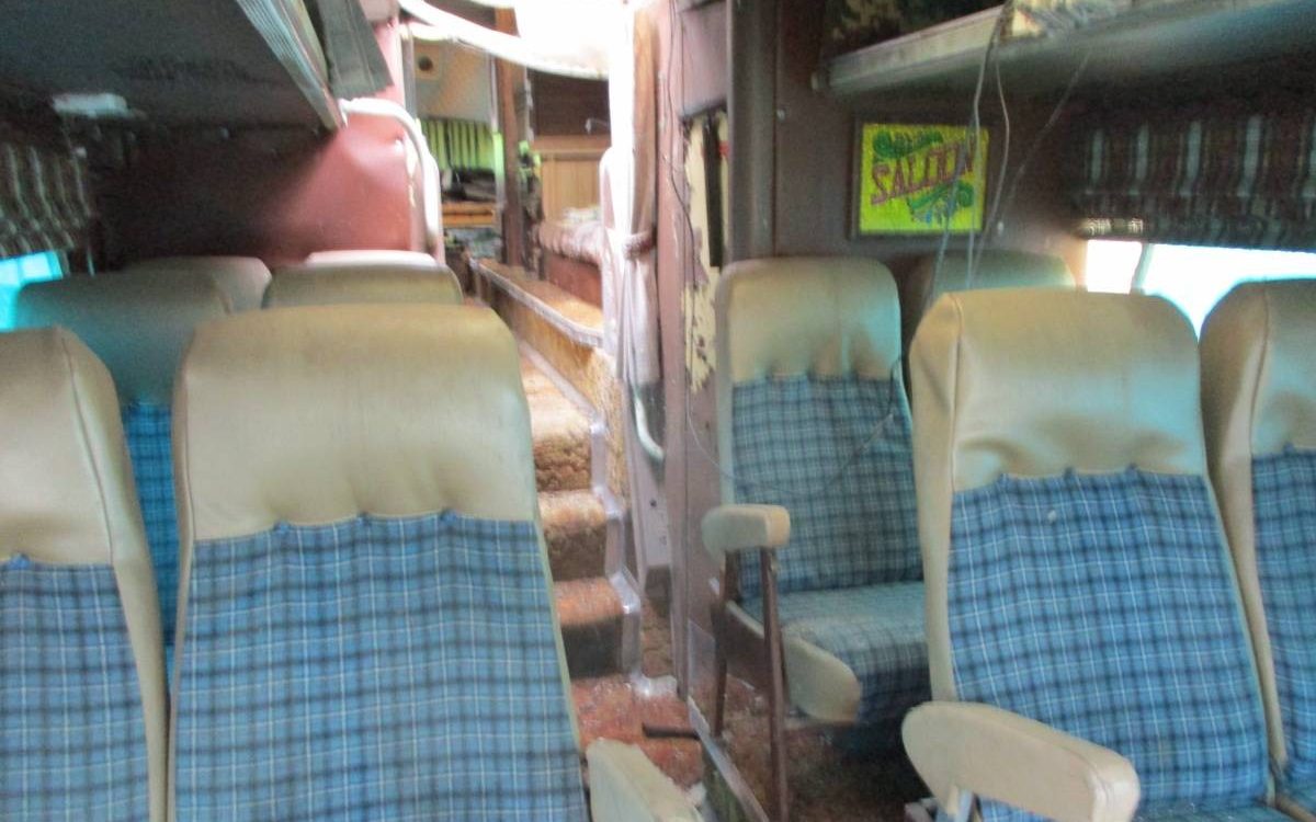This bus does not appear to have been used in common carrier service for a very long time as the interior resembles something more in line with what a traveling band would have employed – note what looks like bunks, on either side, behind the seats. There is also something resembling a kitchen about 2/3’s of the way back. The seller advises, “bus is a big project but all there, not run in years..” You bet it will be!