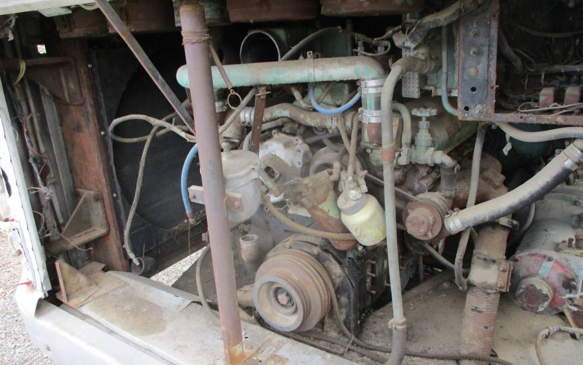 While not stated specifically, research indicates that this GM bus series was powered by a pair of four-cylinder diesel engines, utilizing a three-speed manual transmission and a two-speed clutch which allowed for two different three-speed ranges, or six forward speeds. These buses were considered to be trouble-prone by Greyhound and ultimately motivated them to acquire their own bus manufacturer (Motor Coach Industries). This example is available for $3,500.