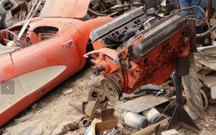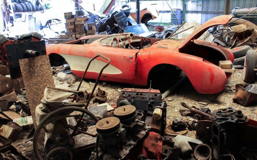 On a farm outside the small town of Glen Campbell, Pennsylvania lies a 40×70-foot pole barn with a partially collapsed roof. For years, Matt Barczak heard stories about a 1957 Chevrolet Corvette that was hidden inside. He assumed that it was probably a 1975, not a 1957, and it wasn’t until recently he was able to take a look for himself. He told Jerry Heasley from Hot Rod Magazine: “My dad is 67 and part of that age group of guys that knew in the mid-1970s that a 1957 Corvette was out here in a barn.”