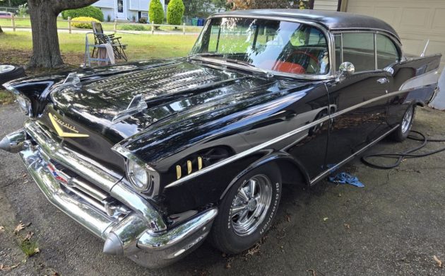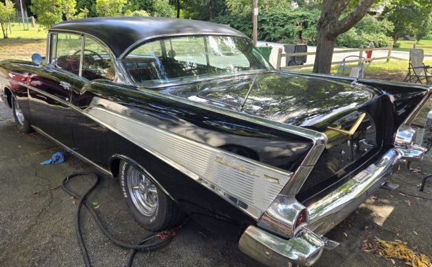 The 1957 Chevrolet Bel Air remains one of the most recognized shapes in American automotive history, and this black hardtop offers a mix of finished and to-be-finished that could be perfect for the right buyer. The seller notes there’s no rust anywhere, solid trunk, floors, and frame, and the body wears excellent stainless trim with fresh glass. Under the hood sits a 402 big block V8 mated to a rebuilt Turbo 400 automatic transmission, providing more muscle than any factory ’57 could claim. The car features front power disc brakes with 2-inch dropped spindles, Cragar wheels, and good tires. Located with a private seller, it’s listed here on eBay with a clean title and 124,748 miles. The main missing piece? The interior, sold off in preparation for a custom leather fit-out, so the next owner will need to supply seating and trim before heading to the local cruise night.