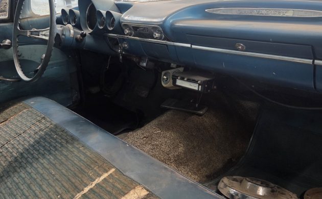 1959 saw a lot of cars that were “over-styled”, to put it nicely, with fins that reached for the sky, doodads festooning the fenders and grills, and body lines going every which way. Somehow the ’59 Chevy made it all work though, being one of the better looking cars of that year. However this poor thing is tired, its one redeeming quality being a deluxe “long roof”. If someone is going to buy this, first talk the seller down a few grand, as this car is going to take a lot of elbow grease and a deep bank account to bring back to presentability.