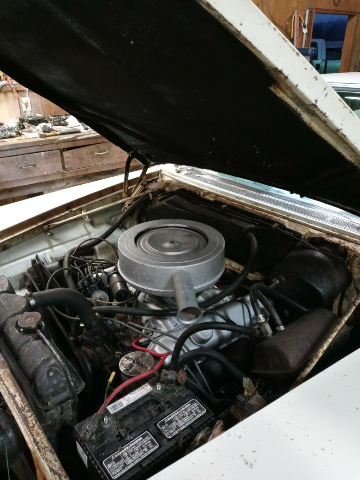 The seller did get the car running after replacing several items but does not go into detail as to how well it does its job now. New parts include the fuel pump, oil pump, and some of the braking system, and the gas tank was cleaned out as well. The wording in the ad is a bit confusing regarding tires and carpeting. They may have been replaced or may have just been ordered; somewhat vague. The car is going to need work on the exhaust system, too. The seller provides before and after photos of the Fireflite i.e. dirt on, dirt off.