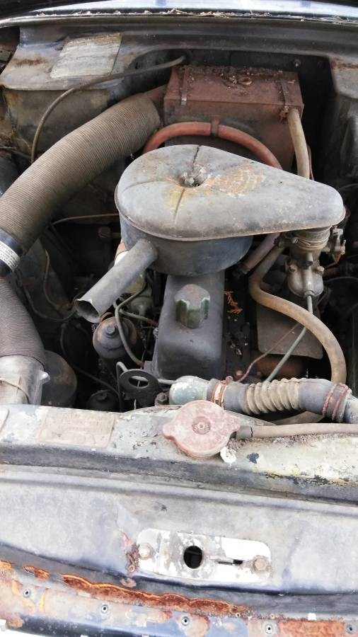 The seller states that the engine does not run, but does not tell us the size of the engine. It is most likely the 1.4 liter inline-4, which was rated at the time for a top speed of 76 mph and 0-to-60 in 25.4 seconds, while delivering 26 mpg (U.S.) It was available with a variety of manual or automatic gearbox choices, the automatic being a Smiths Easidrive.