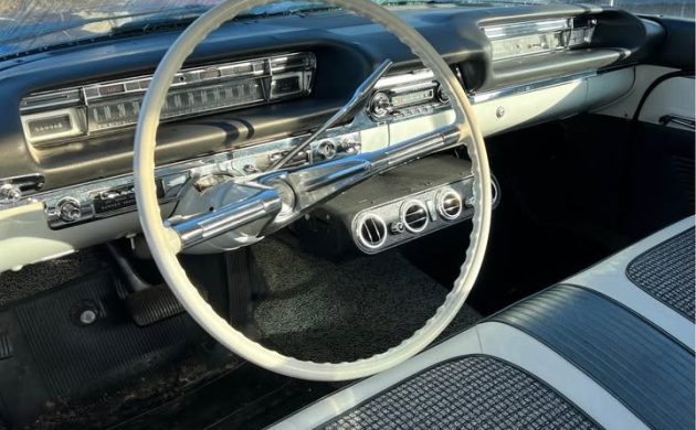 Sadly, the seller ran out of film before snapping a shot of the engine, but a stock Super 88 came with the 315 HP 394 cid (6.5L) V8 delivering a velvety 435 lb-ft of torque through the Jetaway Hydramatic transmission (Olds lingo for the three-speed Hydra-Matic 315). Thanks to the Canadian ’59 Olds brochures at lov2xlr8 for some details. What road trip would you plan for this well-kept dinosaur?
