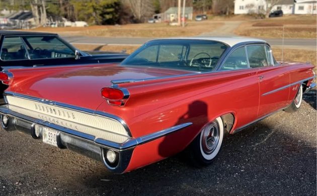 Dragged out into the harsh winter sun, this 1959 Oldsmobile Super 88 SceniCoupe in Edgecomb, Maine represents a pinnacle or “finnacle” for fans of fin-happy late ’50s turnpike cruisers. Low and wide styling said goodbye to pre-war designs that carried through the middle of the decade. Leave those high-riding antiques behind and say hello to the age of Interstate trawlers. Seeing America was never easier thanks to the Eisenhower Interstate system, and up-and-comers demanded as much chrome and rocket-inspired flash as possible. Three times too much was just right! This specimen from that age of optimism comes to market in a spartan listing on Facebook Marketplace. Pilot this Lumber State classic on the highways of your choice for $45,000. Thanks to reader Bruce M. for the tip on this wide-mouthed chrome-mobile.