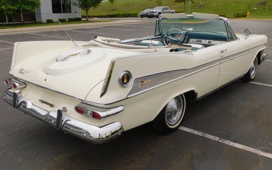 Future generations will look upon this as some kind of alien spaceship. I remember my dads business partner, who lived a more flamboyant lifestyle, they bought the same cars for a spell, while the old man went the conservative route, “Eddie” always had a much nicer car. When the old man had his ’59 or ’60 DeSoto, a plain 4 door, Eddie had a much nicer one, with these swivel seats. It was a $106 dollar option, but came with the convertible. Me and my brother laughed about those, who would need that? Now, as an old man myself, I wish the Jeep had that. Wonderful car, clearly restored, that alternator didn’t come out until ’61(?) and just too clean. They weren’t this nice new. This car cost a whopping $3125 new, or almost a grand more than a Belvedere. It’s no wonder they put a similar one in a time capsule( ’57 exhumed too early, but wasted anyway), because nobody would believe you this was the style in another 50 years.