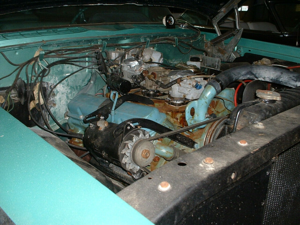The engine is a 389, and the owner has a tri-power carb setup for it. The carbs need to be rebuilt, but a kit is included. Originally it was an automatic with a single four-barrel, and the original transmission is included. Also needed are “reconnecting some wiring” and “minor tinkering.” But it should be easily put on the road.