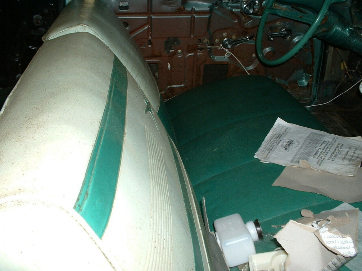Other new parts include the hydraulic clutch and dual exhaust. What can be seen of the original seats look quite good, and very evocative. “Usable trim panels” are also included, but are off of the car. A new headliner and carpets are required.
