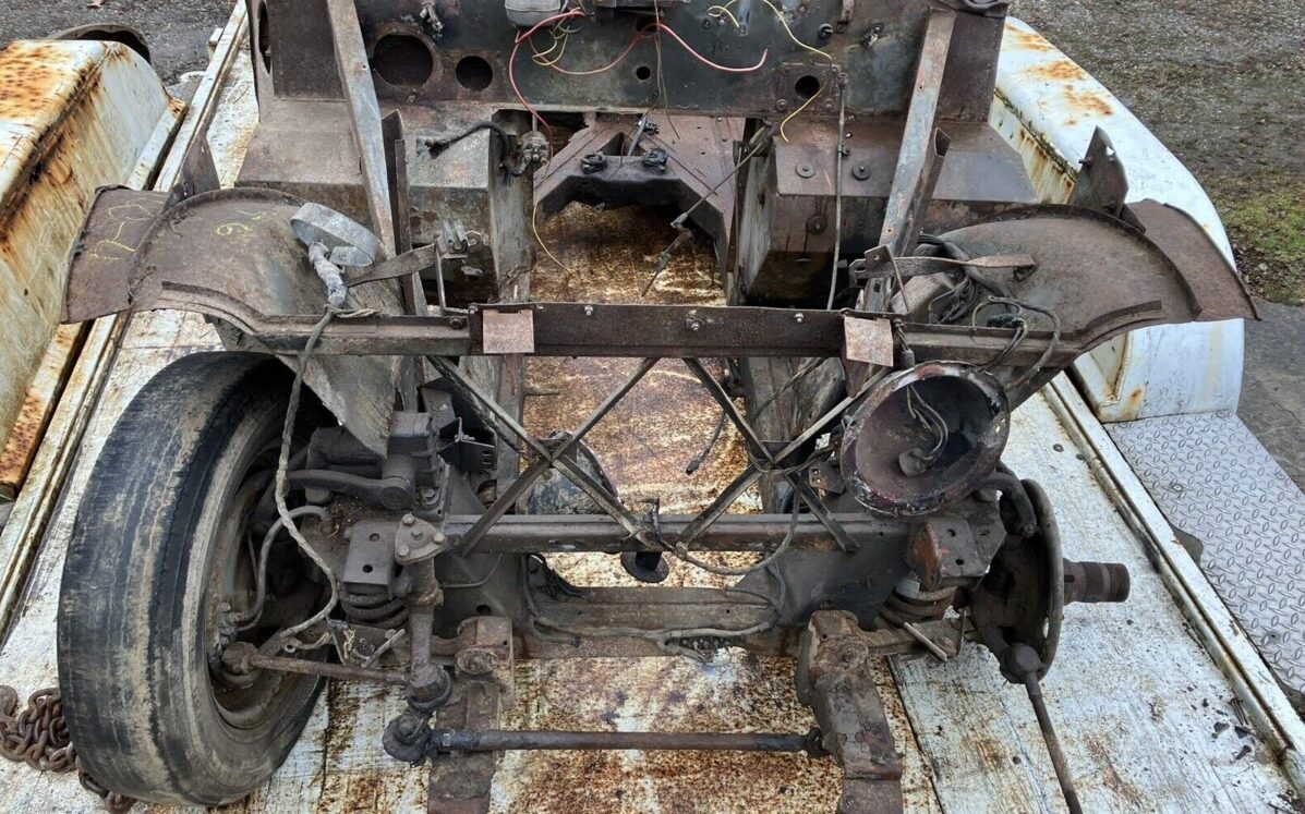 The seller indicates that this example is a Mark I so that’s the reason for my suggestion that this is a ’60 model. What’s not a suggestion, is its condition – it resembles scrap. Per the seller’s admission, there are some steering and suspension components that may be viable, and the frame is thought to be restorable, but that’s it. And maybe the frame is the key to what’s left, assuming that you can find an A-H 3000 owner who has a decent car but a deteriorated frame. Also, there’s no mention made of the differential but perhaps that has value too. Further added is, “Also, I can put you in touch with someone who can provide proper documentation to register the vehicle“. Register what? There’s nothing here to register. Clearly, this poor Healey looks like picked over roadkill, it was likely poached for parts long ago and this is all that’s left.