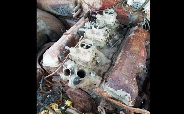 Technically, “Tri-Power” is Pontiac’s name for a trio of two-barrel carburetors. Chevy’s “Triple Two-Barrel” 348 V8 made 335 HP, top of the heap in 1960, identified only by a double-asterisk in the sales brochure. I’ve only tried rebuilding one ancient crusty aluminum carburetor and, friends, it did not go well. The odds against getting these three in tip-top shape seem bleak, but patience and money solve many problems. The listing does not mention if this 348 cid (5.7L) V8 turns freely or not, so bet on “not.” If those valve covers look familiar, remember the 348 big block evolved into the famed “409” the following model year.