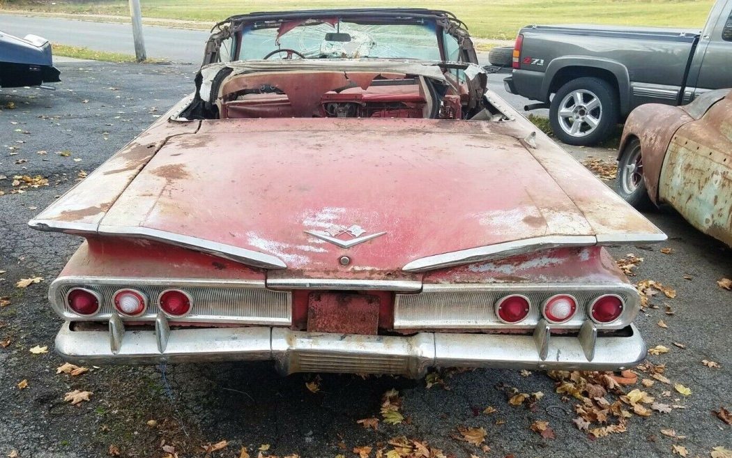 Worth fixing? Maybe, maybe not, someone thinks it’s worth $7200 at this point, convertibles seem to get a better price than coupes, not always. I prefer a 58 or 60 over a 59, but as a Chevy fan I would take one of these, but I have a 55 coupe, so a 55 vert is top of my list. The matching tripower adds to the value, but old cars have better value as original, properly restored ones are like the stock market, up and down.