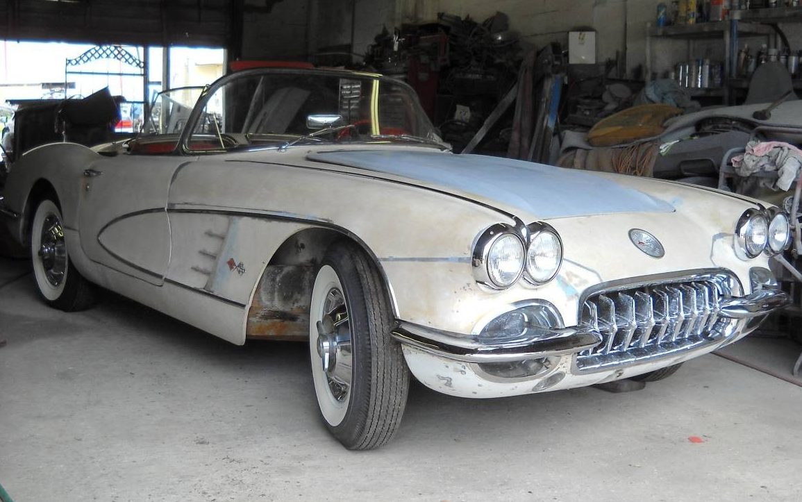 Thankfully, fiberglass doesn’t rust, so that’s one less thing to worry about. It looks like some repairs have already been done to the body and most or all of the chrome trim is present, so potentially not much work will need to be done prior to repainting. No photos are shown of the underside, so that may be a bit of a gamble. Either way, this ‘Vette has a lot of potential! What do you think is the best way to honor this car’s history? Would you keep it as original as possible while still driving it, or would you do a full body-off restoration to bring it back to its former glory?