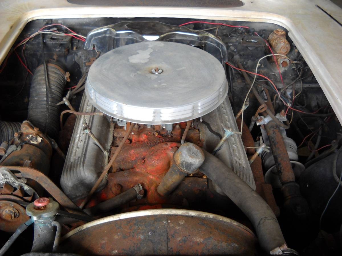 There’s no mention if the engine is currently running or not, but other than some surface rust and a few wires along the firewall, nothing looks to be out of place. I’ve always liked those finned Corvette valve covers, it lends an extra touch of design and class to the engine.