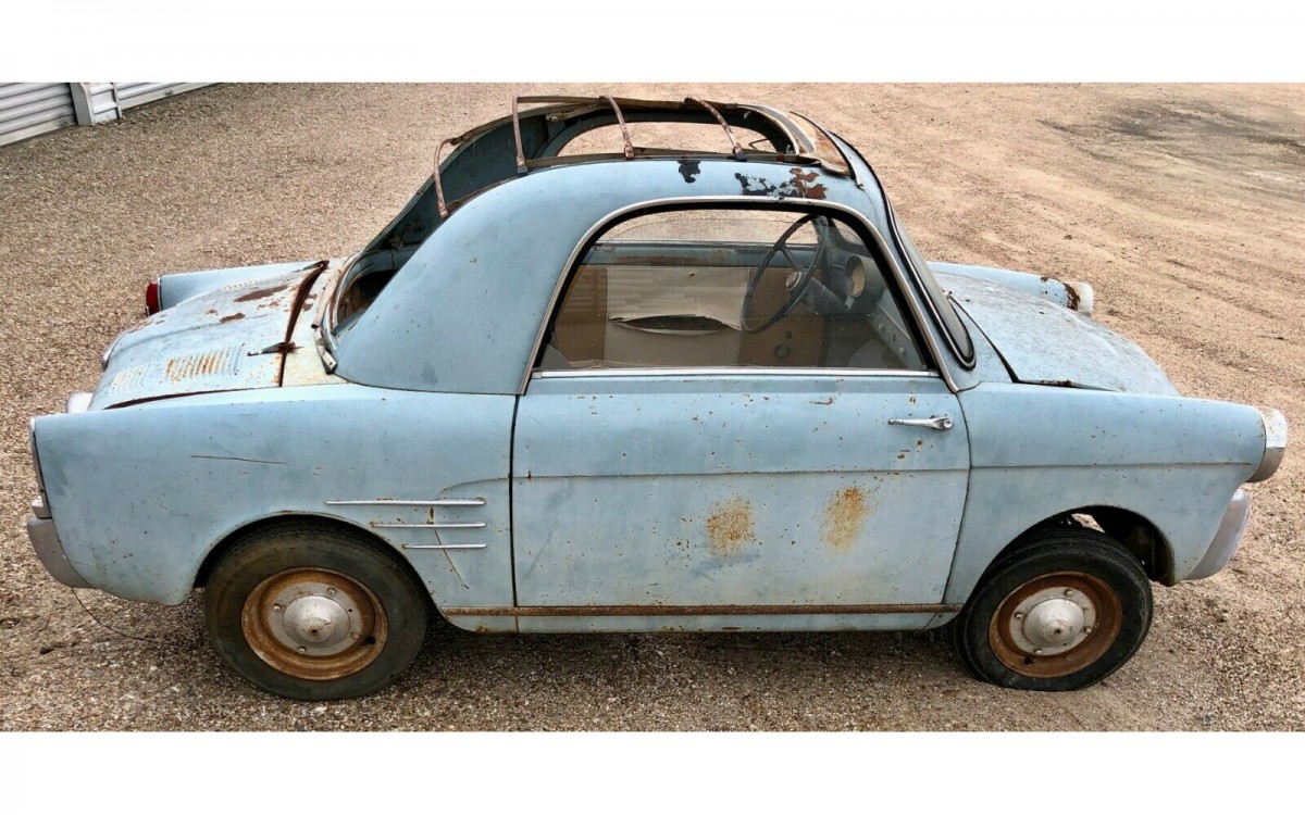 Yes, that’s the correct spelling of this 1961 Autobianchi Bianchina Trasformabile. I never studied any Italian words or phrases before going there 2.5 decades ago and I had to look it up to make sure, it would have come up in the comments if I had misspelled the title. This cute little barn find can be found here on eBay in Houston, Texas. The seller has a $9,498 buy it now price listed or you can make an offer.
