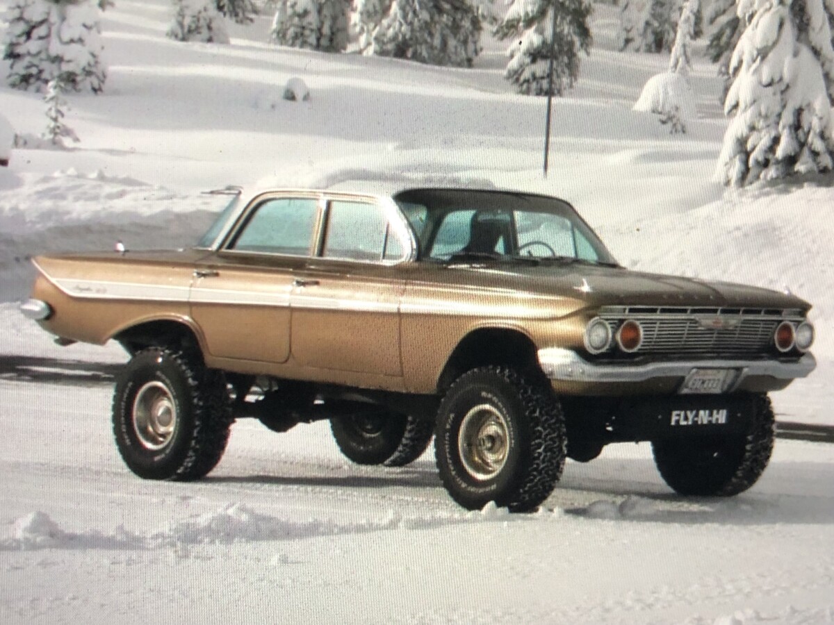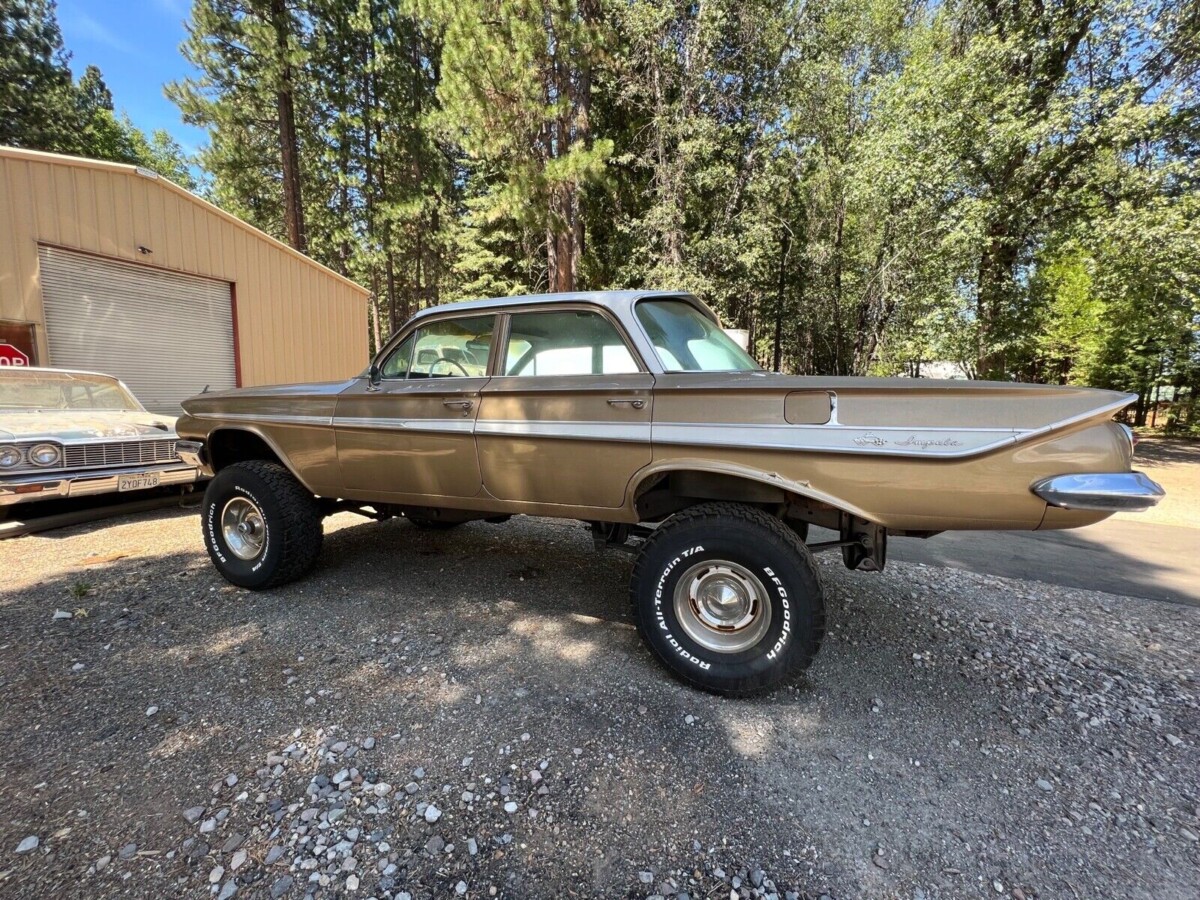 I’m not trying to become the Barn Finds oddball specialist, really I’m not. But after writing about the “Lincoln Mud Truck” last week, I just thought it the only right thing to do to profile this 1961 Impala-turned-4X4. We got the tip on this one from TJ, and if you want the car, or truck (it’s built on a 1977 Chevy Short Bed chassis), you’ll have to find your way to McCloud, CA, which is way up by the Oregon border, near Mount Shasta. Before you make that trek, you’ll buy the car here on eBay. Be warned that 25 people have already bid, though take comfort in the fact that the reserve is not met at $4850. However, you must decide fast: the auction ends on Monday.