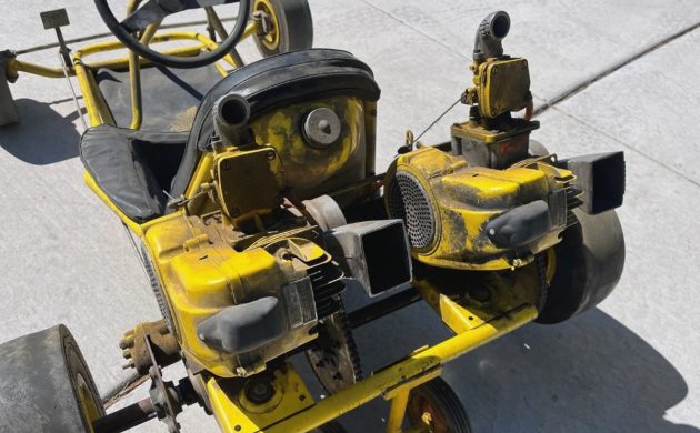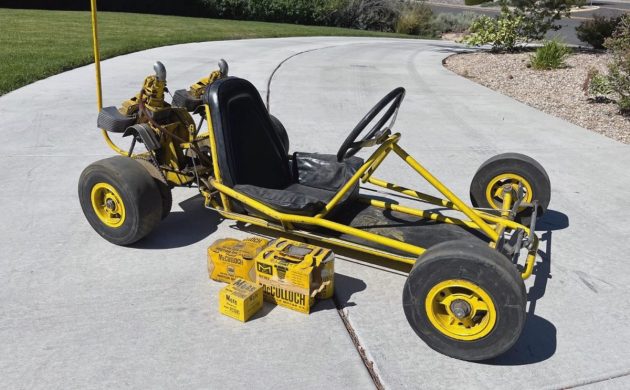 My parents weren’t even married yet in 1959, so I was a long way off, but that’s when McCulloch’s legendary chainsaw engine, the Super 55A, evolved into the MC-10 and was reportedly first used on a go-kart. Where else would this happen but Southern California? This 1961 McCulloch R1 Twin-Engine Go-Kart is posted here on eBay in The Biggest Little City in the World: Reno, Nevada. The seller is asking $9,500, or you can make an offer.