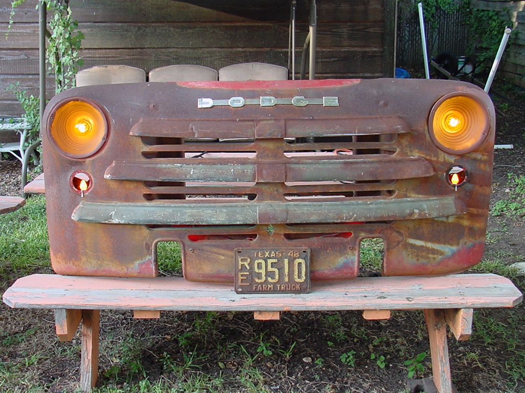 Yes, I love yard art too Josh. It would work. Heres’ a picture of my 1948 Dodge truck, front clip, that I lighted and now hangs on the side of one of my out buildings since this picture was taken. Looks so neat at night. I have another project I’m working on and plan on having it in place by October. Did I mention it’s hot as hell here in Texas this time of year. My age dictates October when it is cooler.