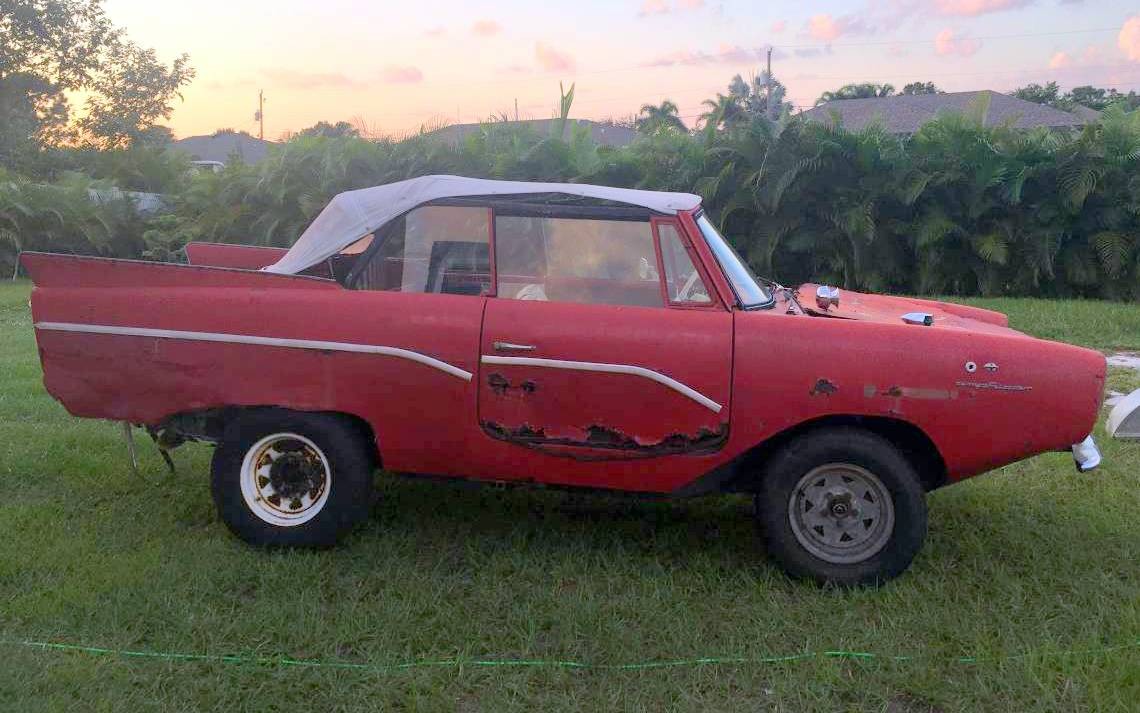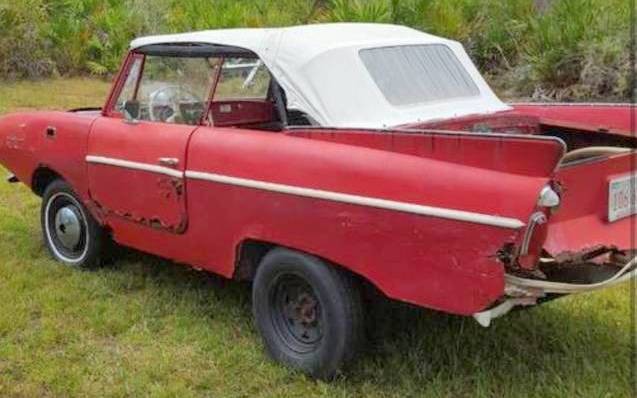 It’s rusty in quite a few places and we wonder how hard it will be to come across what’s not there to finish the job. The seller says there actually is an Amphicar dealer or garage in Orlando that can handle restorations on these little gems. Experts of these cars will probably find faults that I can’t. I know more about cars than I do boats. Most of the Amphicars that show up for sale are either garage queens or clunkers. Hagerty puts a premium on these odd vehicles ranging from the high 20s to whatever someone’s bank account can handle. These machines are not for everybody, but I’m betting no one else in your ‘hood has one. Don’t “miss the boat” or you might find yourself “underwater”!