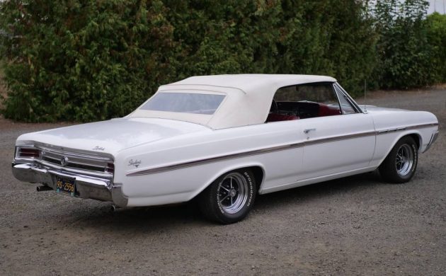 Often, when referencing the introduction of the 1964 GM A-body cars (Chevrolet Chevelle/Malibu, Pontiac Tempest/LeMans, Oldsmobile F85, and Buick Skylark/Special, it’s the Pontiac that sucks all of the air out of the room with its trend-setting GTO. Oldsmobile gets its foot in the door with the 442, and Chevrolet, of course, claimed the volume award and showed some tendency towards performance late in the model year. How about Buick, such as this 1964 Skylark convertible? An unsung hero. They’re great-looking cars, imbued with Buick quality and reliability; they just don’t get much press. Perhaps it’s because the Gran Sport performance option didn’t appear until 1965, or maybe the Skylark just got lost in the volume shuffle. Whatever the case, we have one for review today, and it’s courtesy of Jack M. This fine-looking ’64 droptop is located in Eugene, Washington, Oregon, and is available here on craigslist for $19,500.