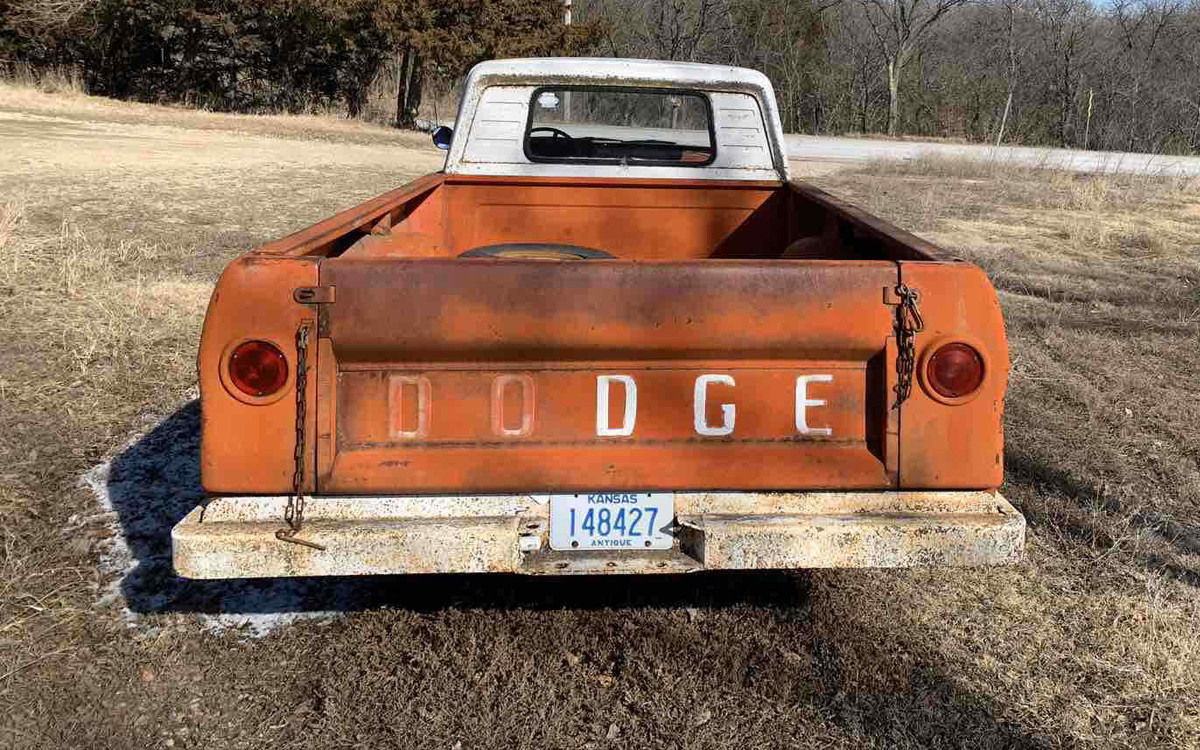 The seller of this D-100 says that it’s original and it sure looks like it is. They use it for weekend drives and that’s exactly what I would use it for, although as a teenager I would have used it as a daily driver. The inside of the Sweptline box looks surprisingly solid as does the whole truck, other than a few little rust spots here and there. The underside looks solid, again, other than a few spots that will need work.