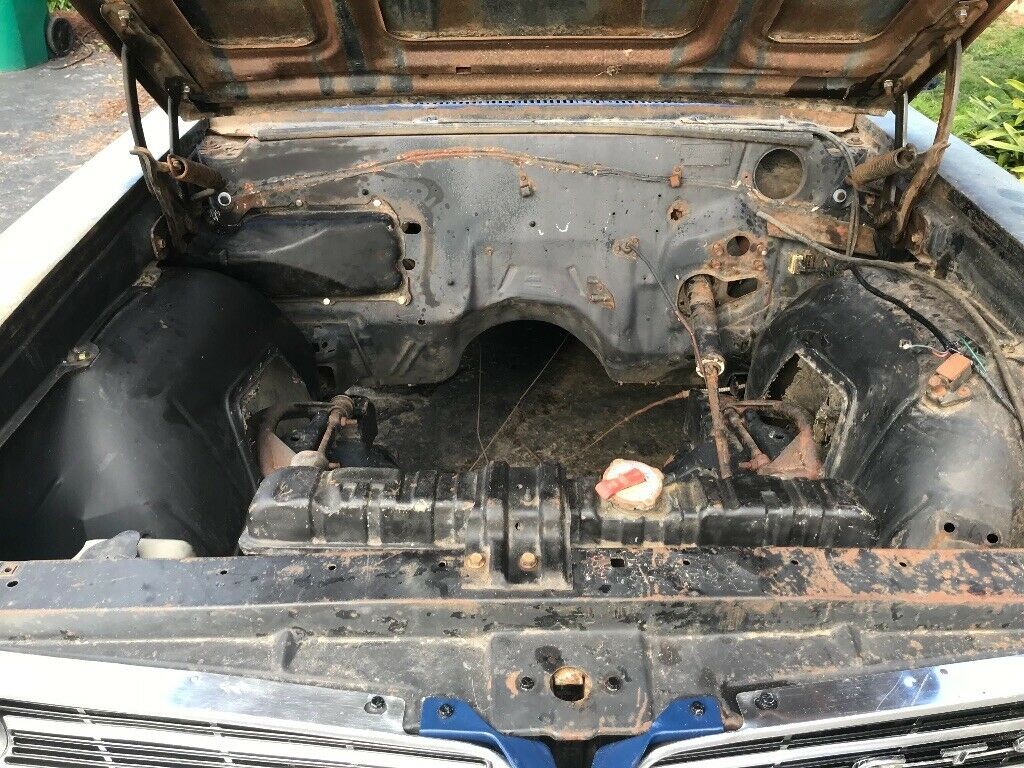 The interior is incomplete, and a large percentage of what is there looks like it will require complete restoration. The GTO originally featured a black interior with a power driver’s seat, but all of that is gone. Essentially, it’s a case of what you see is what you get with the interior, so there’s plenty to do there. While the dash looks like it is largely original, it does appear as though there is an aftermarket tachometer fitted into the instrument panel, and it is hard to tell whether the dash has been cut to accommodate this.