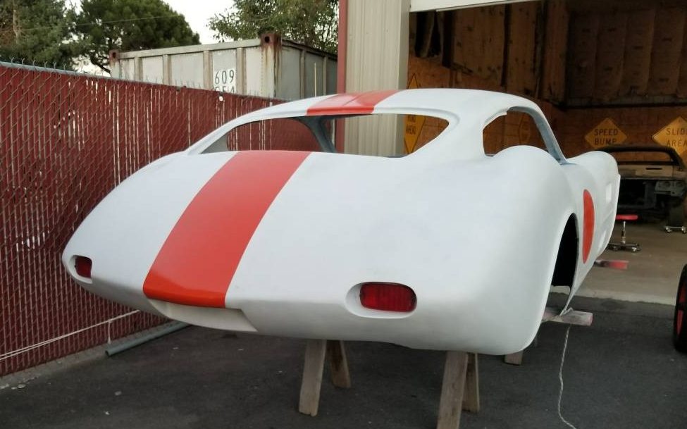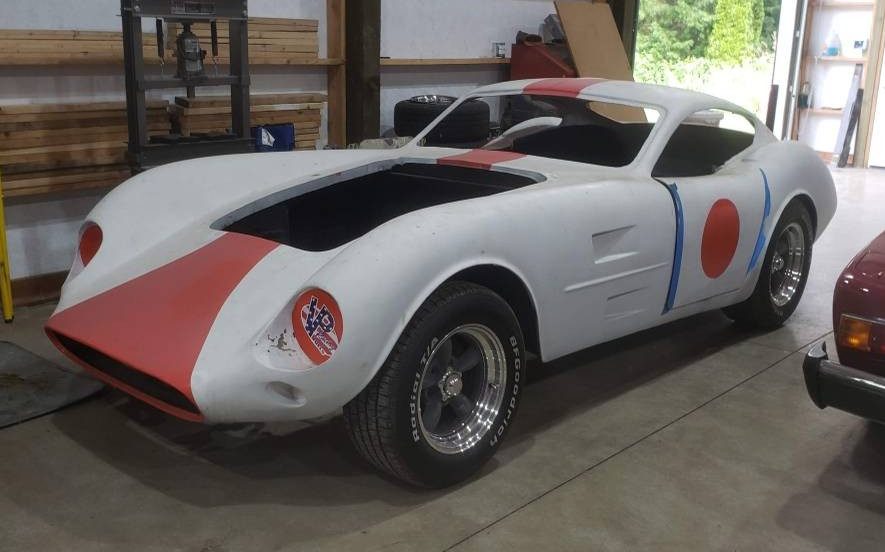 It appears that some preparation work has been done on the body, although it’s hard for me to tell whether the majority color is gray primer or paint. In any case, the body seems to be free of the spiderwebbing and damage one typically finds on a 50+-year-old kit car body. The seller encourages those serious about purchasing the car to give them a call; I’m sure more details about the history of the body and the reasons for selling it at this point would be interesting!