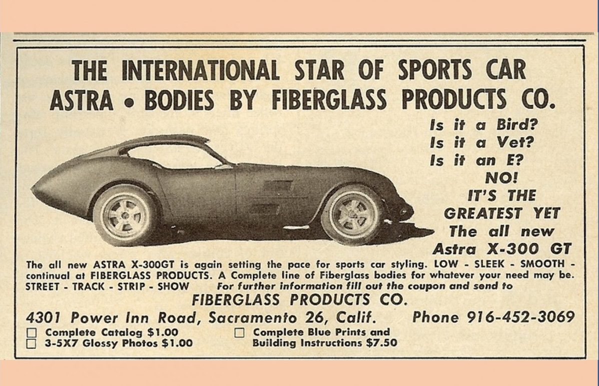 By this point in time, the Astra bodies were being produced by the Fiberglass Products Company, and the X-300 GT was exclusive to that firm. You can read all about the Astra variations here on Geoff Hacker’s fantastic site Undiscovered Classics, but in summary, the X-300 GT was fitted with more Corvette components, roll-up windows, and the aforementioned raised roof. Additionally, the dash, cockpit, and firewall were installed from the factory for ease of assembly.