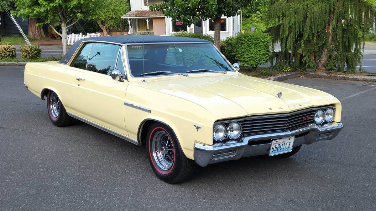 Love the 65 body style. Never been wild on the color bamboo cream; aka butternut yellow, cameo cream, etc, but I’ve evolved to appreciate it. I certainly would not kick this Buick outta my garage. Looks like a fairly clean car, although I am not familiar enough with the early Gran Sports to know if anything is out of sorts besides the cut out for the CD player. The Buick rallyes with the redline tires against the red insets of the wheel and GS emblems look sharp. I like it. There was a color combo wise identical 4 speed 65 for sale in Georgia just about a year ago or so for 45k.