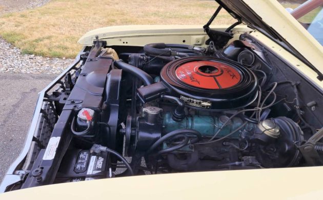 The interior also didn’t quite live up to the GTO’s fully-instrumented image. The standard longitudinal speedometer was still in place, and aside from some sporty bucket seats, a console, and a floor shifter for the automatic, one could be forgiven for thinking they were riding in a standard Skylark. (Well, this one has a console-mounted tach, and there is a “Gran Sport” badge on the glove box.) The steering wheel in this one is from a later Buick, but everything looks nearly perfect in here, and this is also an air-conditioned car (more likely to be found in a Buick muscle car, I’d say). There is an aftermarket radio, which may or may not be a selling point, as the dash was cut for it to fit.