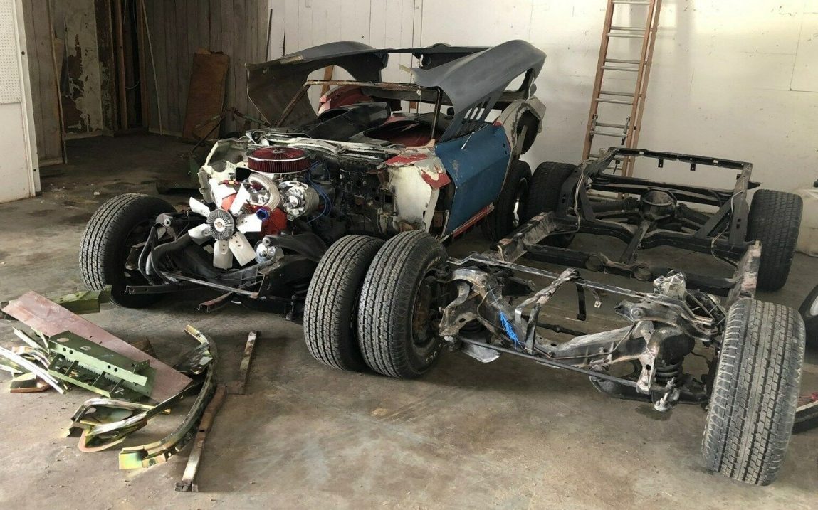 The seller explains in the ad that the body has been cut behind the seats and that the chassis came from another car that was being restomodded. There are some extra front and rear floors, some birdcage parts and an aftermarket one-piece front clip are included. The car is also wearing my favorite version of the famous Chevrolet rallye wheels, although I have no idea if they are correct for the car or not.