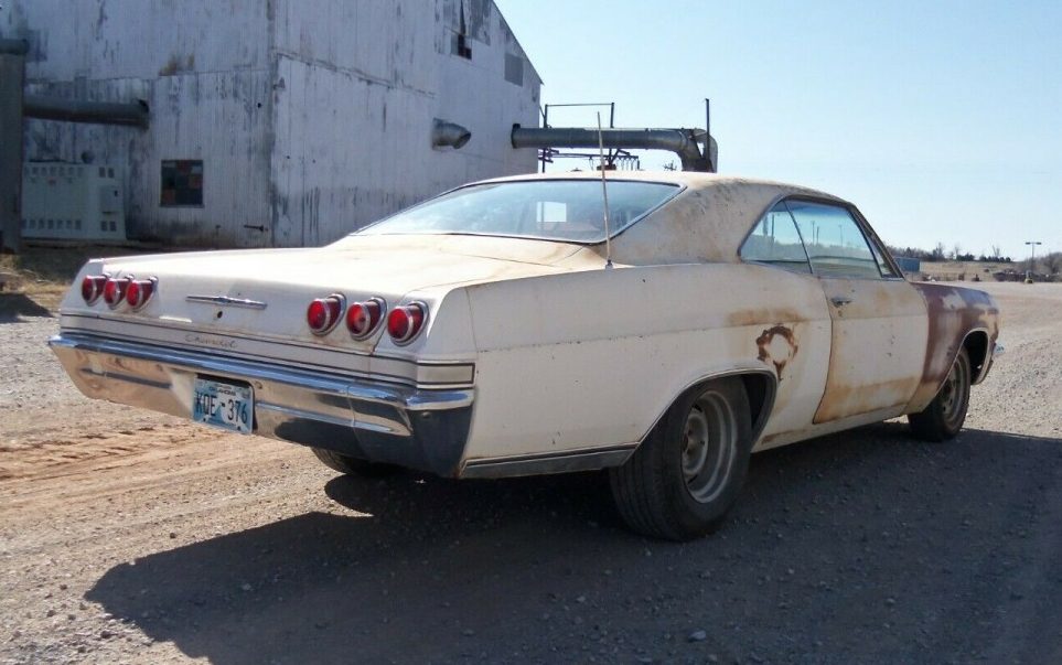 I have a ’66 Impala in the Barn awaiting renewal. It’s not a hell of a lot, a 283 with power steering and brakes, and an engine that is generally uncooperative and is a mess. So far the car has disc brakes installed and the 283 has been pulled awaiting a 327 on the way. It’s Lucerne Blue with a matching interior and
