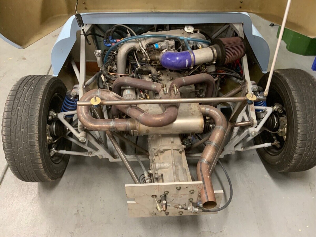 Mechanically, this car is no more Elva than is Santa’s Sleigh. (That’s a Ferrari—how else could it go so far, so fast, all in one night?) In fact, the engine in this car is a 2.0-liter Subaru that puts out 185 horsepower. As you can see, the car appears to be fiberglass or composite, and that makes it light. The seller cites a power-to-weight ratio of 6.4lb./hp. Work that out for, say, a Honda Civic coupe, and you’d have a car with about 470 horsepower. But of course, you’re not going to drive this on the street, are you?