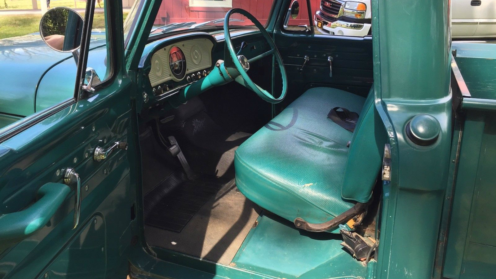 Naturally, the inside looks every bit as nice as the outside. Not a lot of luxury here — this was a working truck. Not even a chrome gas cap or bumpers to be found. I do see what I think is a tiny split in the seat, but I’m not complaining too much.