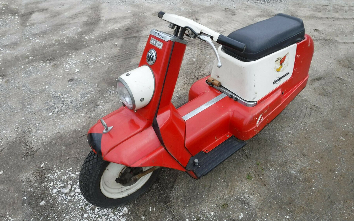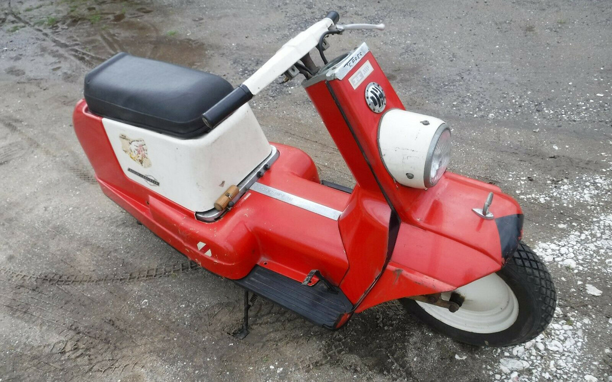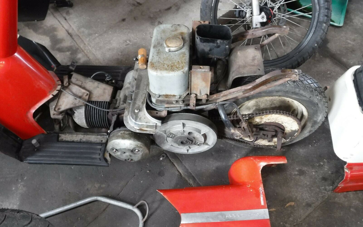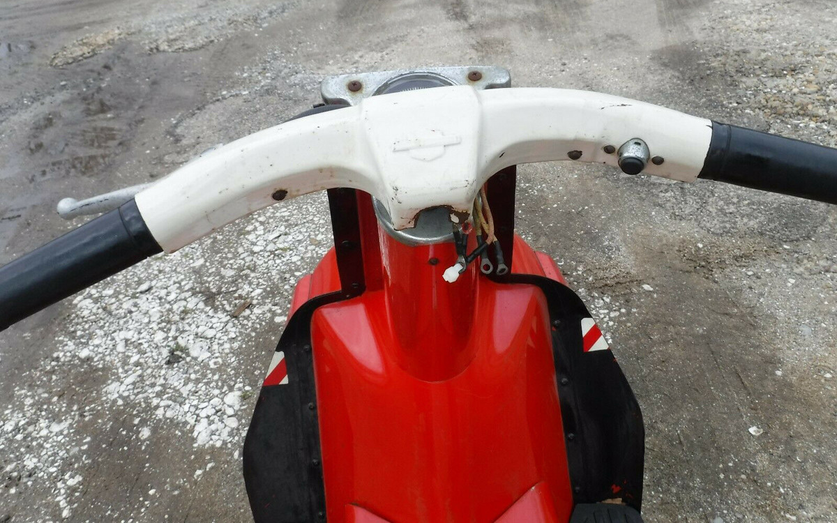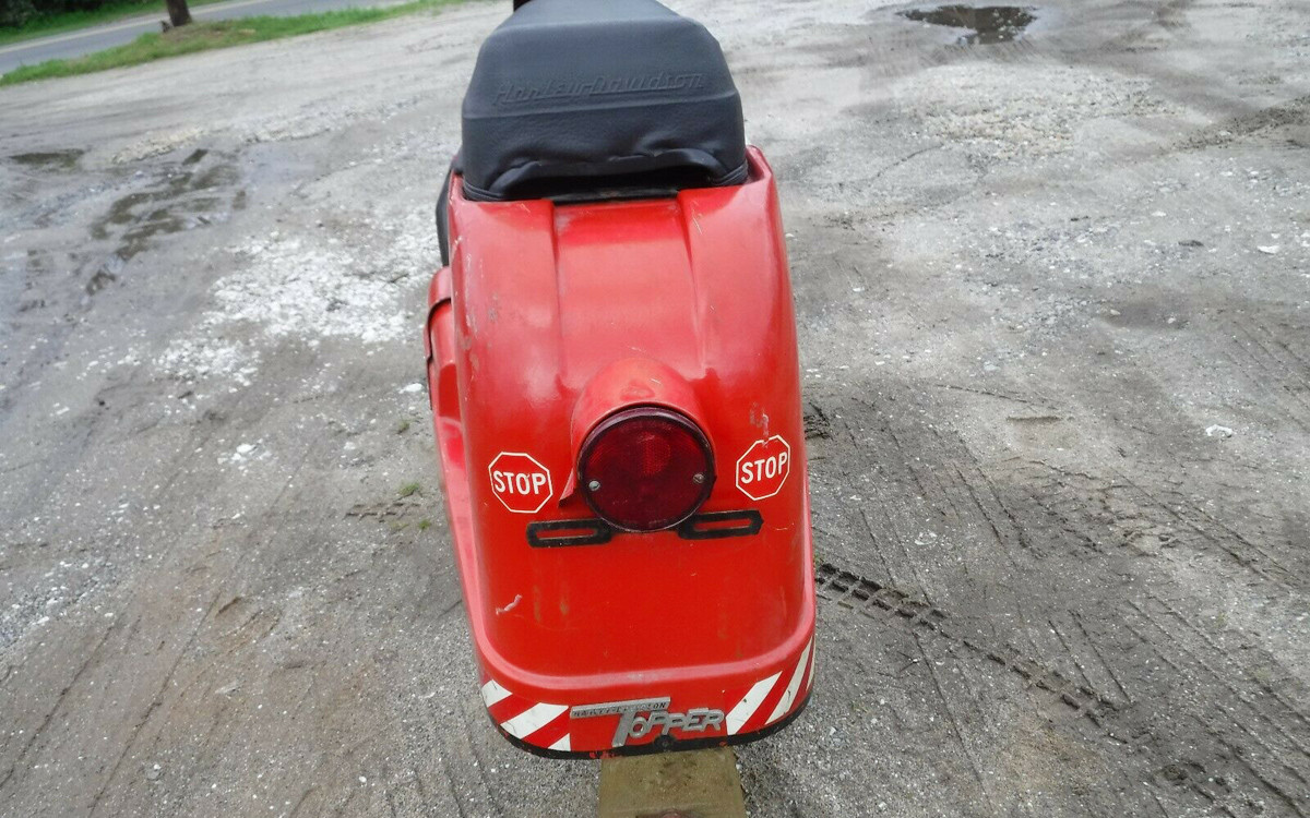 Harley-Davidson purchased 60% of the Tomahawk Boat Company in the early-1960s and their fiberglass division gave the company a good reason to produce lightweight scooters such as the Topper and also fiberglass golf carts. Neither were long-lasting products but the Topper was made until 1965, so this is a final year model. The engine is a horizontal single-cylinder, 165 cc, two-stoke, 9-hp, high-compression engine. I’m sure that most Barn Finds readers could get this one humming in no time. The question is: would you ride it in public? You know I would.