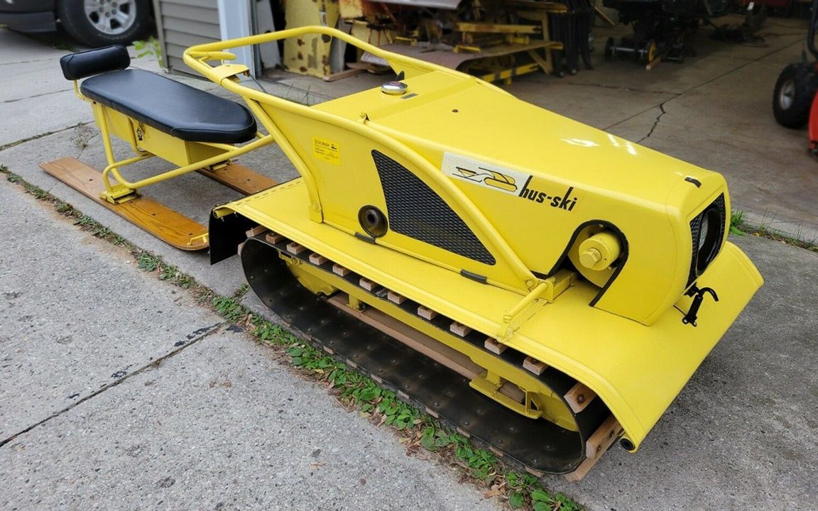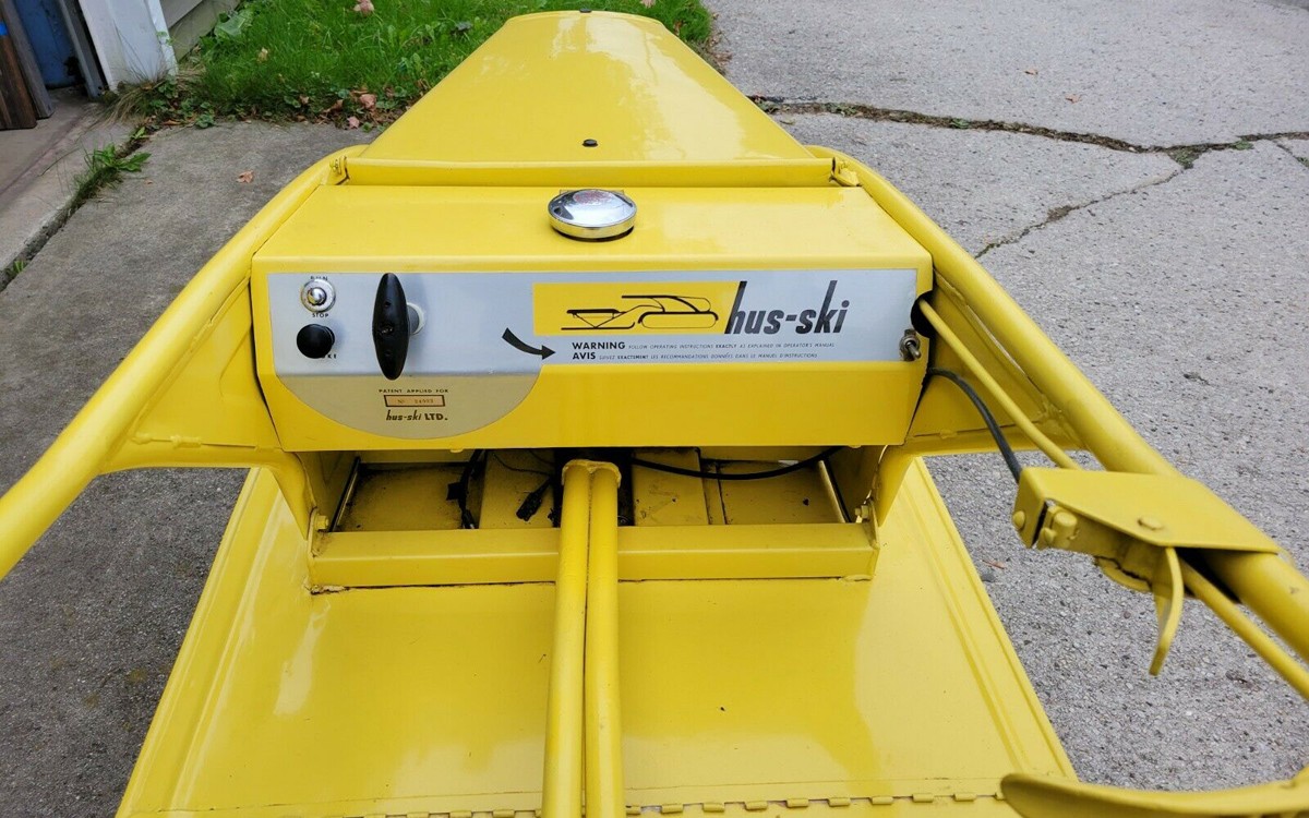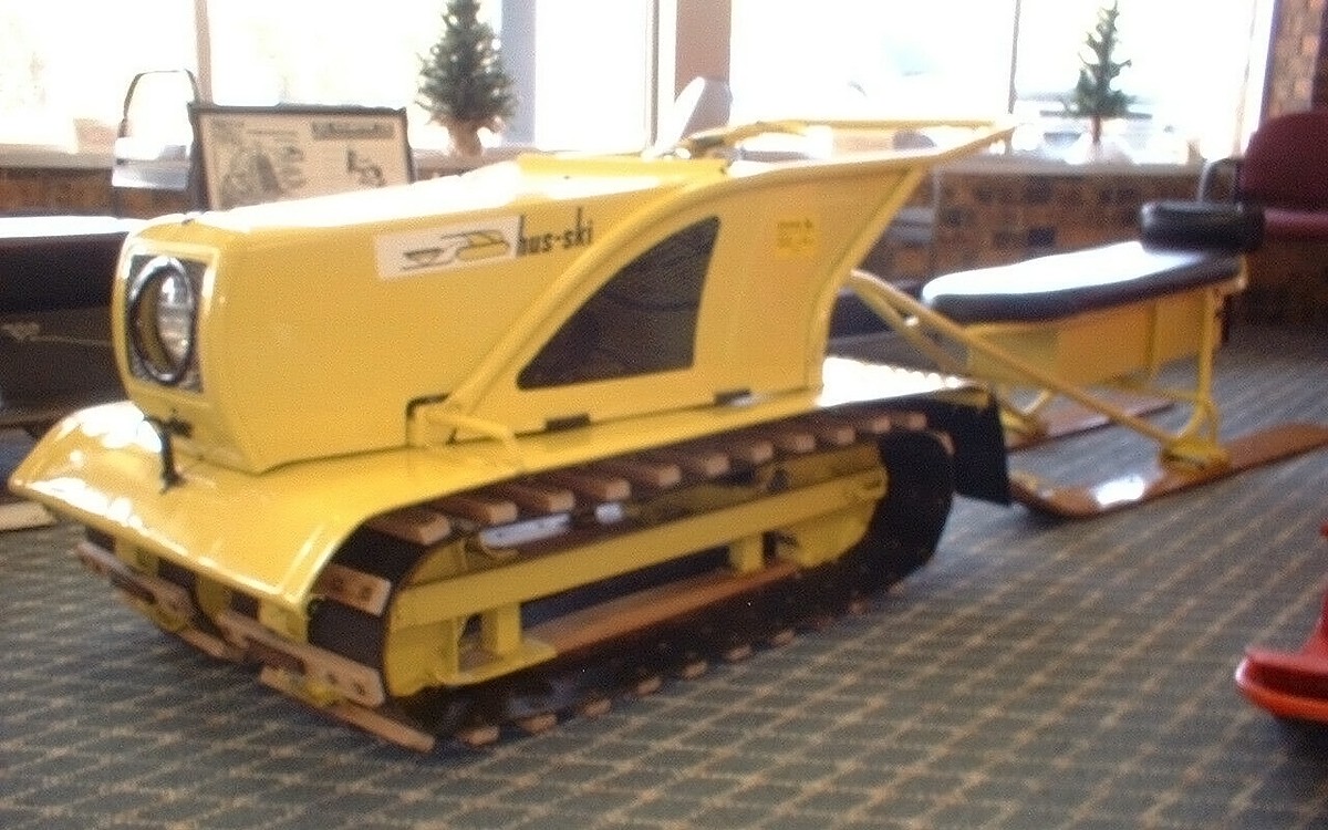 The Hus Ski was born in Ontario in the late-1950s and was the brainchild of the McOuat brothers. They had the idea of a “tractor” with tracks that pulled a sled that the driver or rider rode on and several prototypes were built between 1958 and 1961. It was originally called the Sno-Traveler but due to Polaris having had used that name for several years, they changed it to Hus-Ski for 1964. In 1965 the 200A model came out which offered a new driven clutch and new drive, the handlebars were slightly inclined, and the rear flap was changed from metal to rubber.