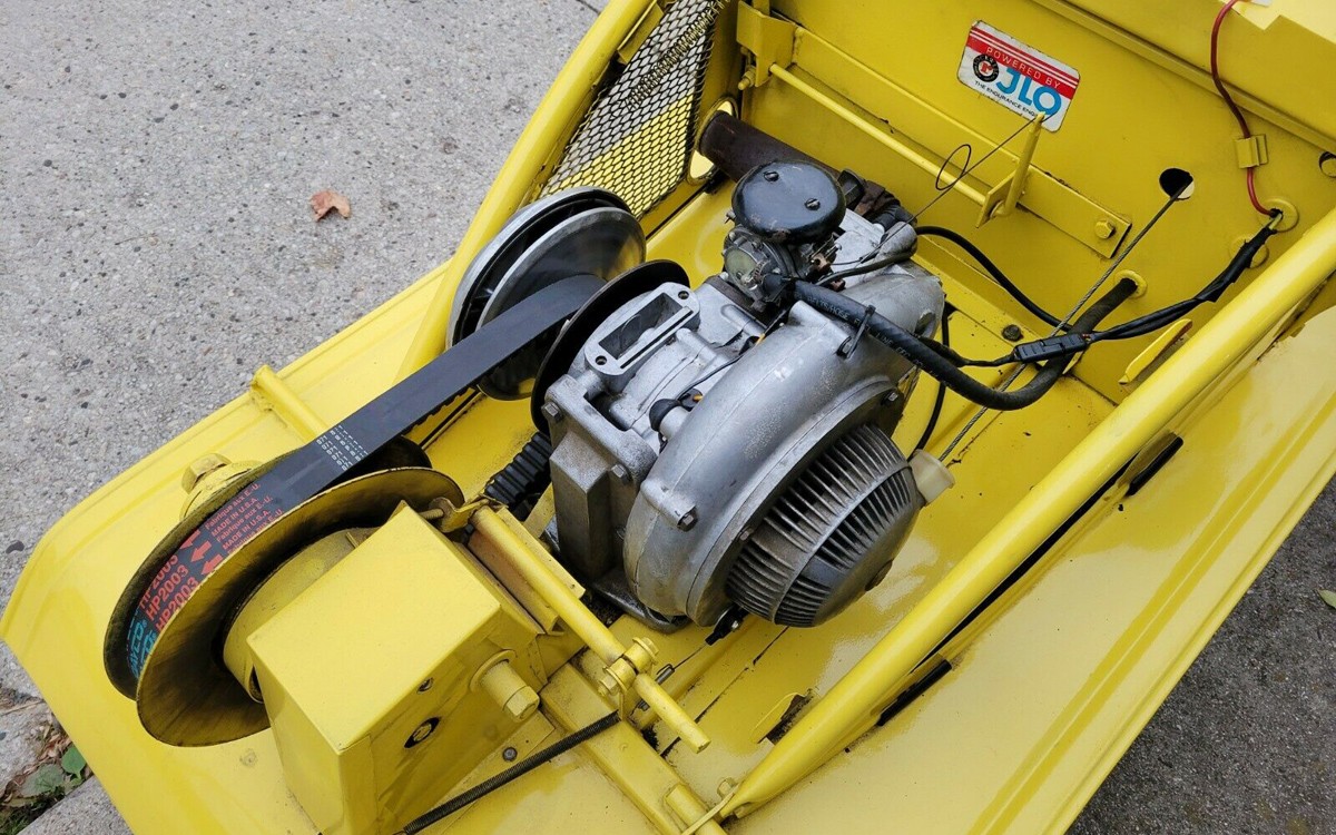 The engine is a 148 cc JLO with 8.8 horsepower, the same as what would have been offered in both 1964 and 1965. Before that they used a 134 cc West Bend Power Bee that wasn’t cutting it but the JLO worked much better. I think that the West Bend Power Bee is basically the same engine that I have in both the Sno Runner and Rokon. The seller says that this one has been kept in running condition and it’s ready to go right now. This sure looks like a machine that I would want to add to the oddball collection if I could. Have any of you owned or ridden a two-piece snowmobile like this Hus-Ski?