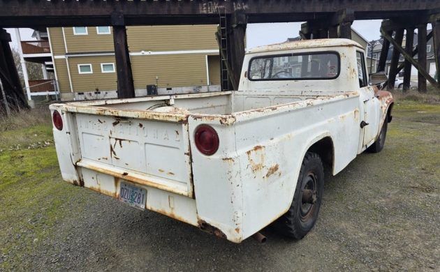 The unique bed design is pretty fantastic in my world. It almost has a Powell Sport Wagon look to it from the rear, as if the taillights should double as slide-out fishing pole compartments. There is a lot of surface rust on this truck, as you’ve noticed, but aside from a few dents and dings, it sure looks like it could be restored to looking like new again if the next owner cared about such things.
