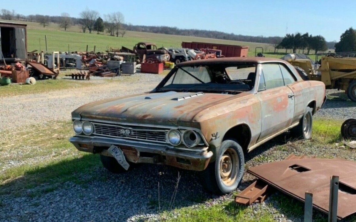 From 3/26/19 – Ever wake up after a rough night looking like this car? One black eye, busted jaw, bruised, recoiling from a too-bright sun? This 1966 Chevrolet Chevelle 396 SS four-speed in Farmington, Kentucky may have seen better days, but it comes with a host of original parts including the engine and transmission. The listing here on eBay includes a better description and picture set than some cars with $100,000 Buy It Now prices, and this one can be yours for one click and $8750.