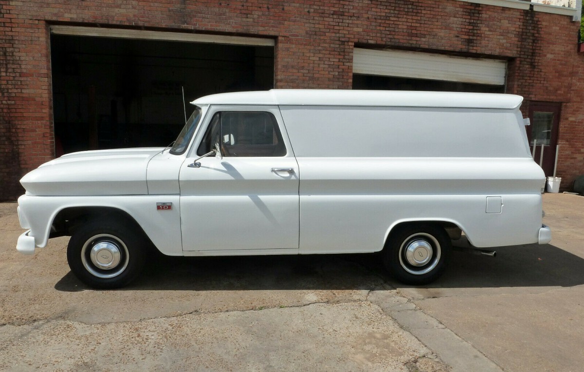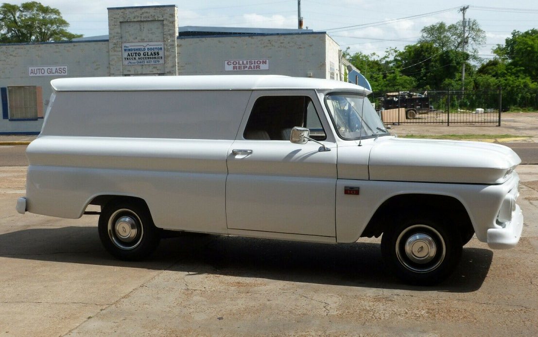 Quick, do you know the difference between a panel truck and a sedan delivery? Panels are based on truck chassis, and sedan deliveries on cars, though they both serve the same purpose. This 1966 Chevrolet C-10 is definitely a panel truck, and it’s for sale here on eBay, with bids reaching $7,750 (reserve not met). The truck is in Clarksdale, Mississippi, home of the blues.