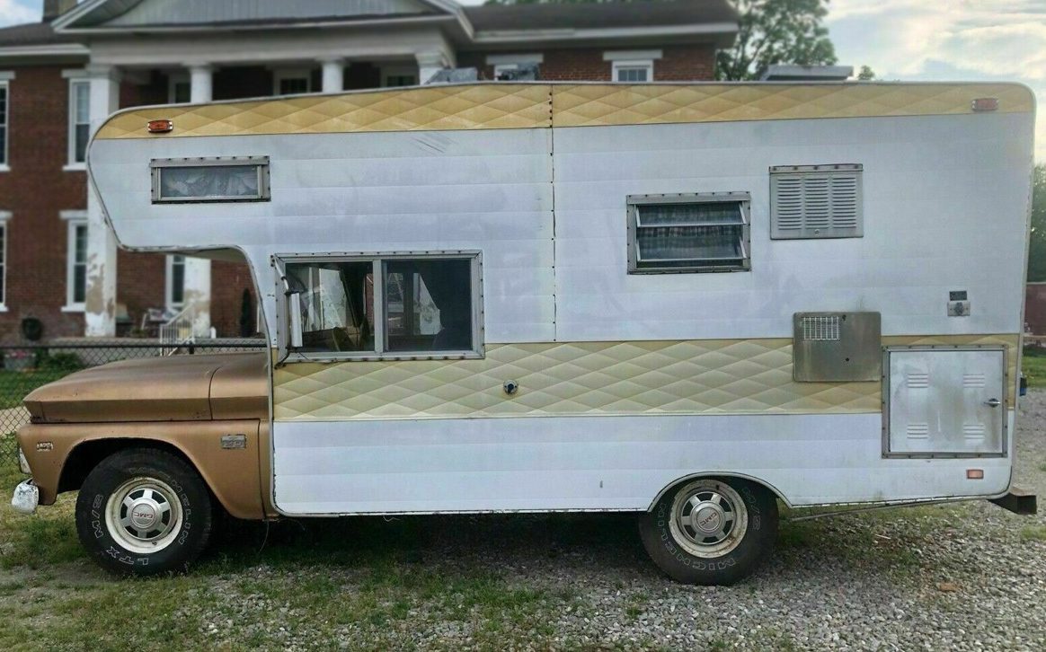 We have seen quite a few unique chassis-mount campers here on Barn Finds over the years but I couldn’t find one like this unique 1966 Chevrolet C20 chassis-mount camper without the truck doors! It almost looks like a trailer mounted on a truck chassis, which I guess a few of these RVs were. The seller has it listed here on eBay in Elizabethtown, Indiana and there’s a $6,000 buy-it-now price or you can make an offer.