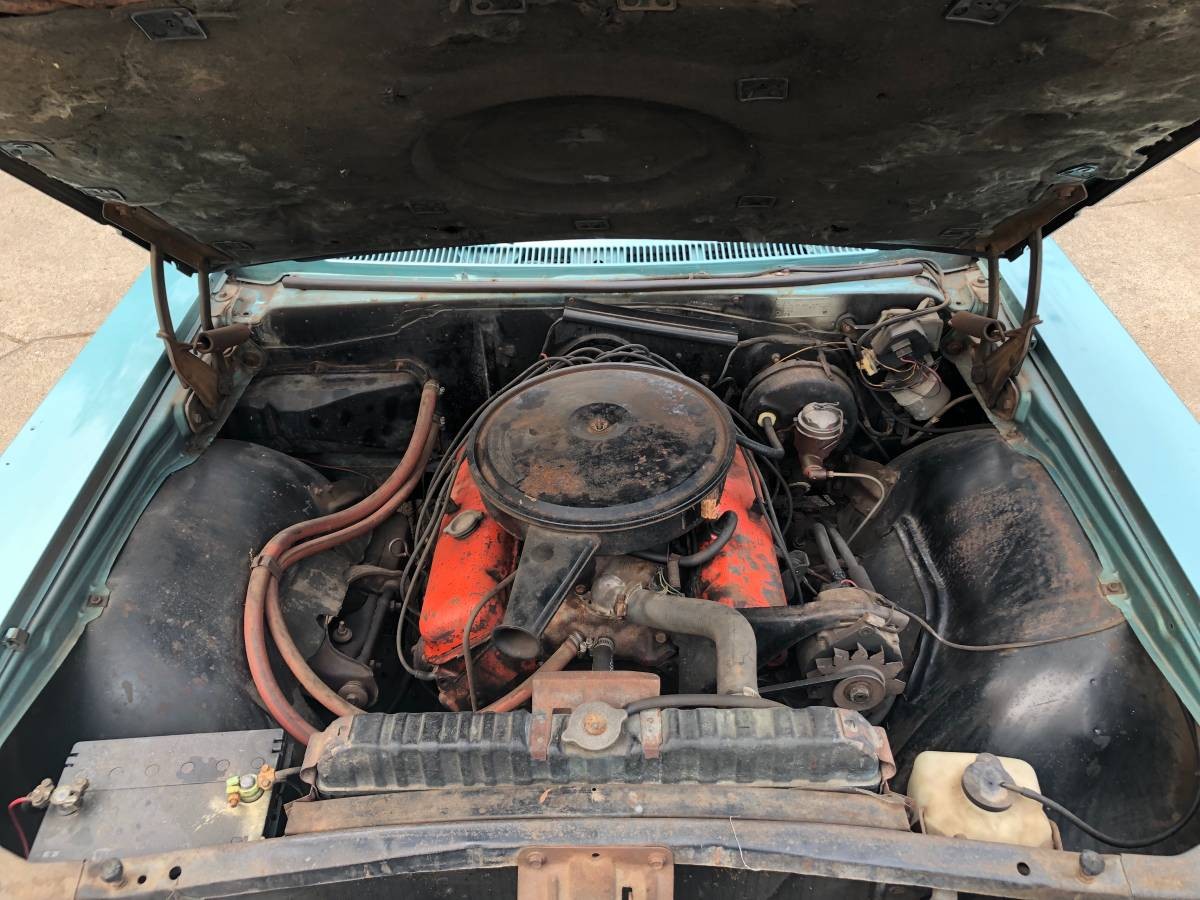 So, the first question that you’re undoubtedly going to ask is why there is a photo of a rolling chassis included with this car. That is because it offers a potential solution to the single confirmed rust issue with the car. It has rust in the rear frame. The choice is really to have it repaired or to slot a new frame under the car. Sounds radical, but at least the option is there. Otherwise, the Artesian Turquoise paint looks to be in very nice condition, as does the chrome and trim. However, there is some noticeable bubbling under the black vinyl top. This might be nothing sinister, but it is hard to be sure.