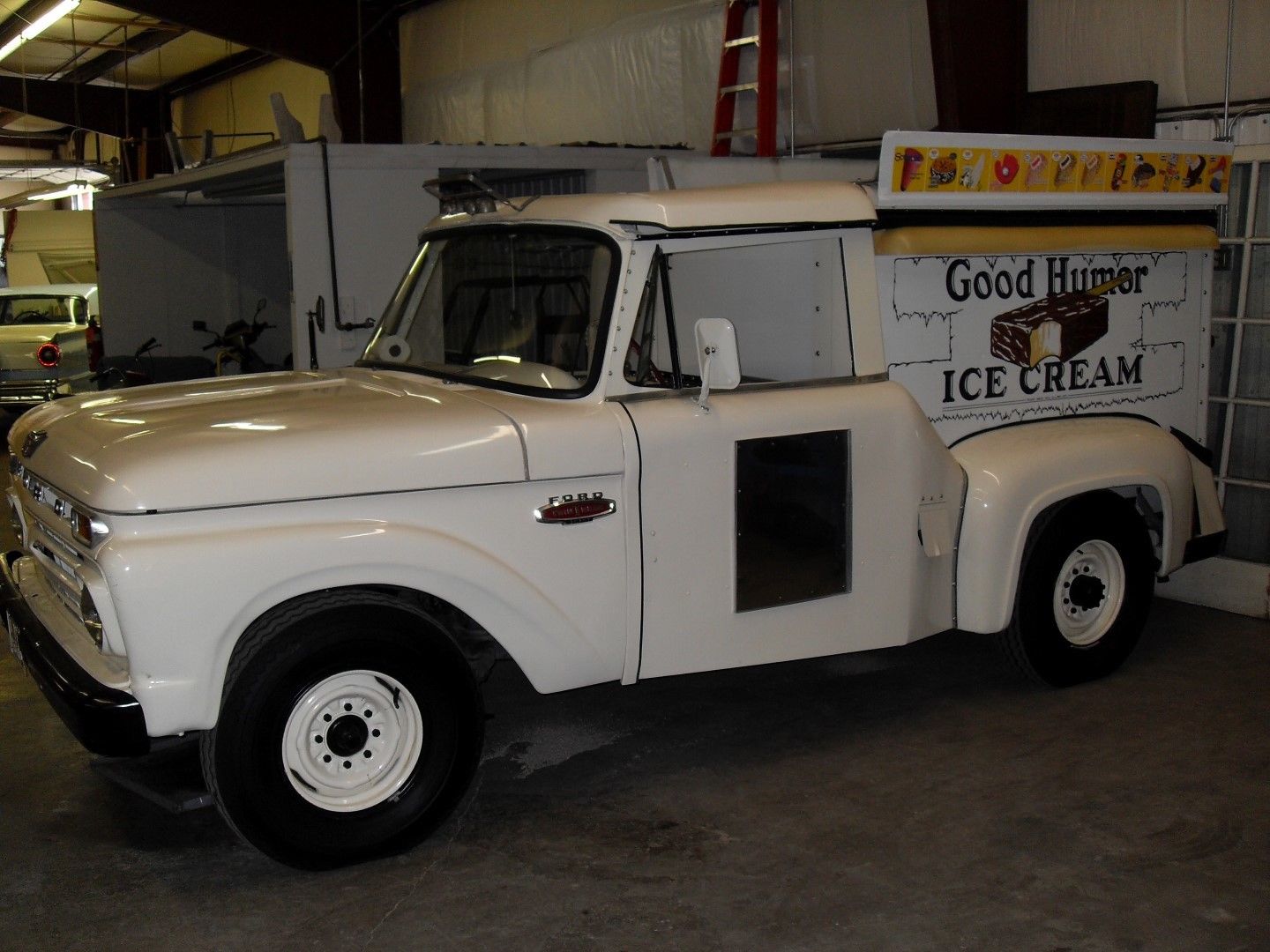 Those who believed this truck is overpriced are correct. This model Ford Good Humor Truck was built by Hackney Brothers in Wilson, NC until 1969. Good Humor did start using step in vans as early as 1962. The last of the trucks built for Good Humor were built in 1977. After that the company sold their fleet of trucks. Most of those who bought them were their original salesmen. They purchased them with their routes and the distributors protected them by not selling product to anyone who did not have a route.
