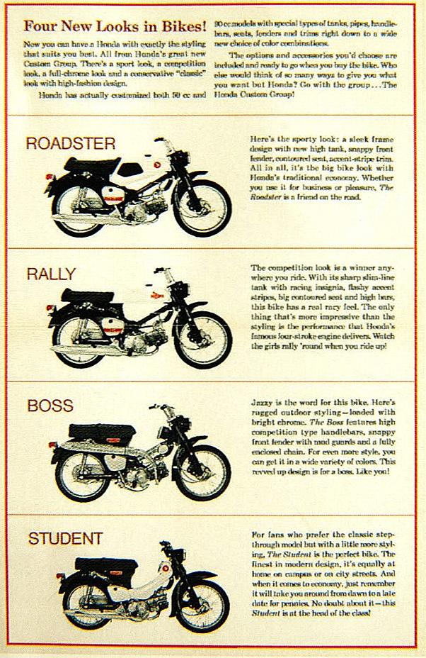 I remember looking at the Honda Super 90 in 1967 but chose a Yamaha 100 Twin Jet instead. More power, two cylinders, two carburetors and two pipes made the Twin Jet choice a no brainer for a 16 year old.