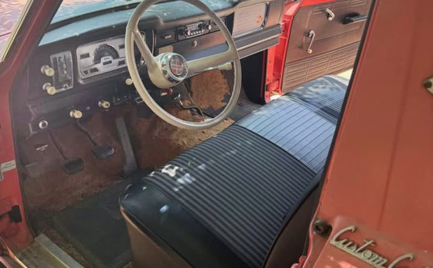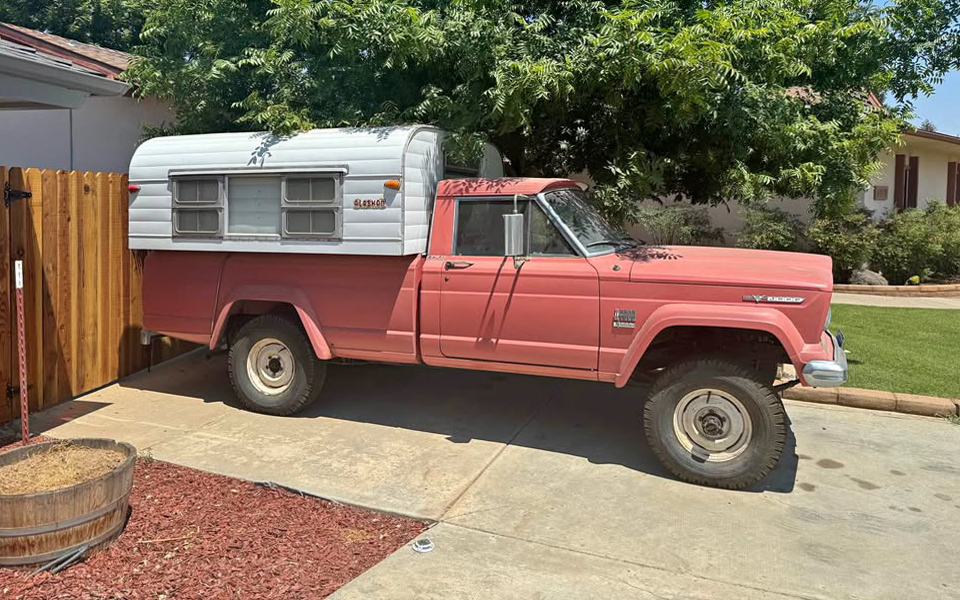 Another missing photo is the engine compartment. Seriously. This one is said to have a 327-cu.in. V8, which was known as the “Vigilante,” with 250 horsepower and 340 lb-ft of torque, more than enough to haul the Alaskan camper. It has a three-speed manual and column shifter sending power to all four wheels, or it did when it ran. It has some fuel system issues and needs to be trailered home. I just noticed it says “sale pending” at the bottom of the listing, so this great-looking Jeep may be gone. It really looks like it’s in fantastic cosmetic condition.