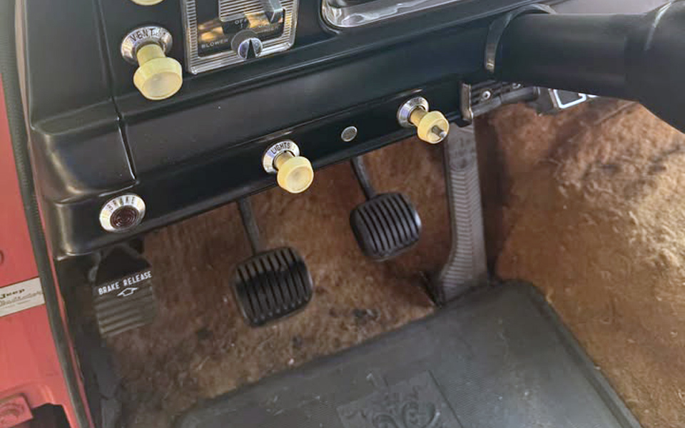 The J-3000 designation doesn’t make it a one-ton as it may with some other manufacturers. The J-3000 has a 126-inch wheelbase compared to the J-2000, with a 120-inch wheelbase. One of the many detailed photos is one showing the brake and clutch pedals. They list the mileage as 13,875, so maybe those are the original pads? Low-mileage vehicles are always questioned, as they should be.